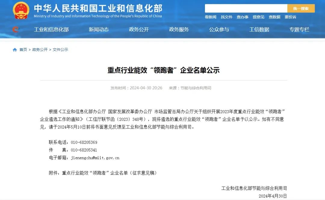 据悉,重点行业能效“领跑者”制度是国家确定实施的一项重要节能政策,旨在通过发布同类可比范围内能源利用效率最高的产品、企业或单位名单,树立标杆、政策激励、提高标准,形成推动终端用能产品和用能单位能效水平不断提升的长效机制,对增强全社会节能减排动力具有重要意义。本次发布的名单共有30个重点工业领域的80家企业上榜。