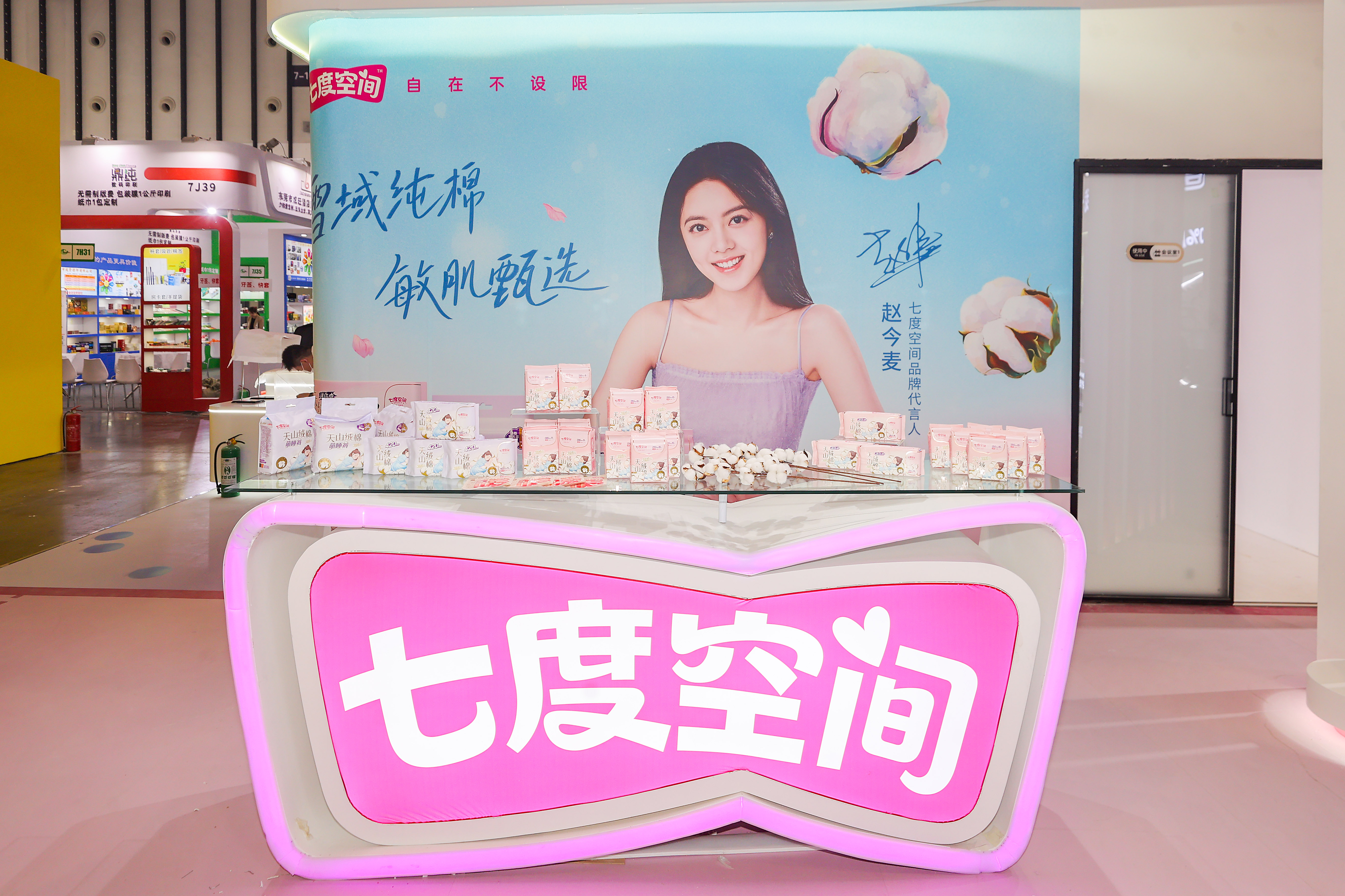采用天山雪域稀缺纯净长绒棉的七度空间“天山绒棉系列”也是本次展出的核心产品。七度空间“天山绒棉系列”采用100%纯棉,天然低敏更安心;添加天然乳霜因子,柔润细腻,温柔呵护敏感肌;甄选天山雪域长绒棉,比普通纯棉纤维更长,更加柔软纯净,给予各位敏感女孩足够的“自在舒适”体验。