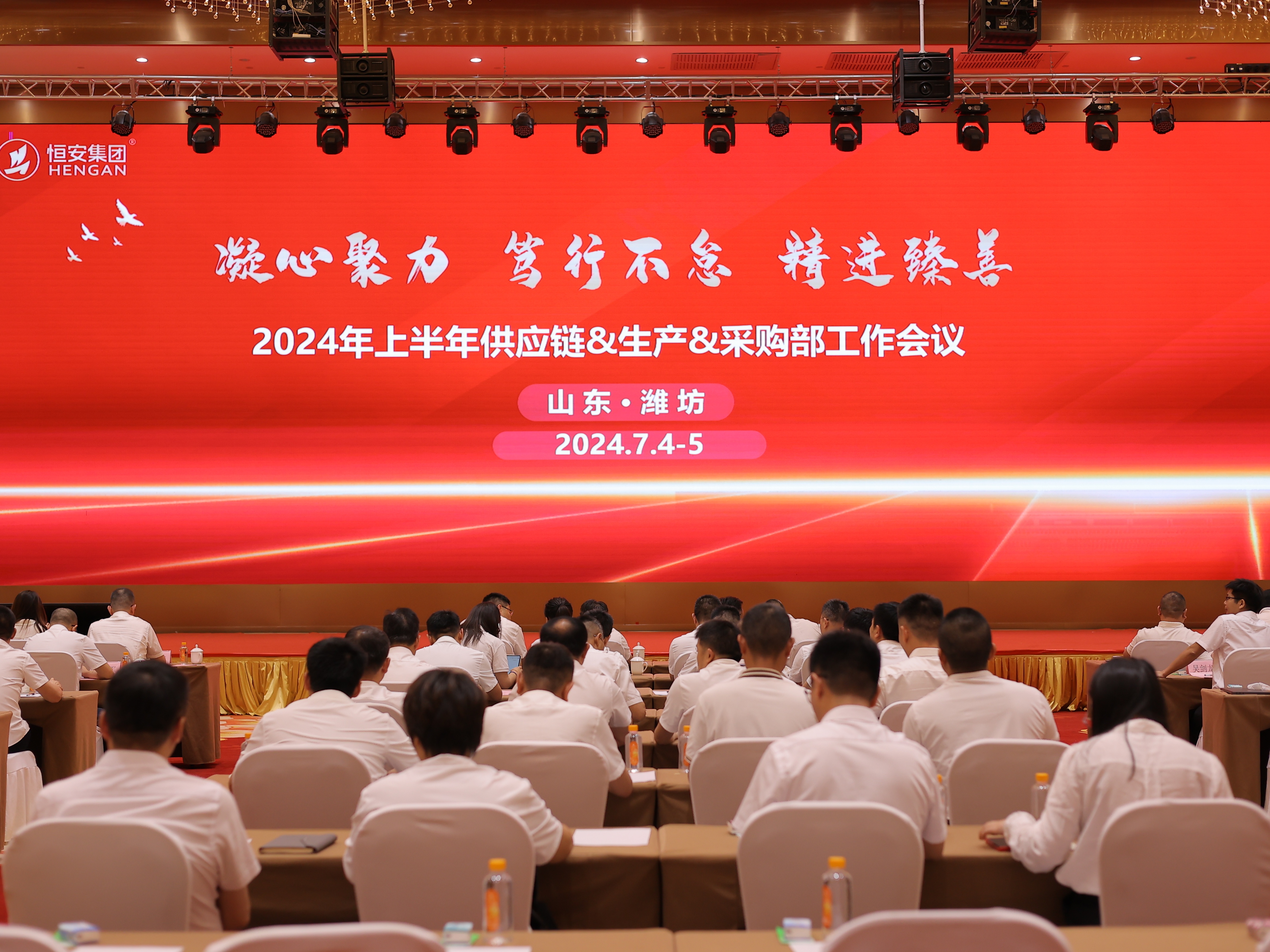 凝心聚力,笃行不怠,精进臻善。7月4日-7月5日,六合联盟大供应链(供应链、生产、采购)2024年上半年工作会议在山东潍坊恒信拉昆塔温德姆酒店举行。集团总裁许清流(线上),副总裁许清池(线上)、许大座、许文默、王向阳,以及集团商贸、市场、财务、人力等各职能部门负责人、全国各地生产公司负责人、质管经理及区域供应链相关员工共同出席本次会议。